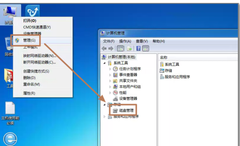 1、将硬盘安装到电脑上之后,开机,在电脑桌面,选中我的电脑点击右键-“管理”进入计算机管理界面。