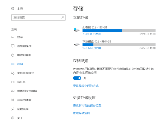 打开Windows设置面板,点击「系统」-「储存」-「更改新内容的保存位置」,这里将默认保存位置是C盘,将它们全部更改到D盘或其他盘。